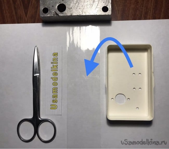 Аналогично можно защитить и этикетку (см. рисунок 9) к ИЗЁ, которая будет вклеиваться во внутреннюю нижнюю половинку корпуса – мыльницы. В случае с ИЗЁ она нужна для настройки или ремонта поделки, а также чтобы похвалиться (в этикетке можно указать фамилию, имя или ник изготовителя). В поделках другой тематики этикетка может содержать иную информацию. Какую конкретно? – Вам подскажет собственная фантазия. И уж, конечно, этикетка не обязательно должна размещаться на внутренней стороне корпуса. Если содержание этикетки – например, правила работы с поделкой, то ей самое место на наружной, хоть и задней стенке корпуса.