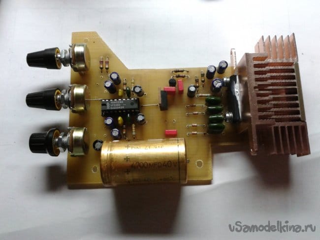 Переменные резисторы запаяны в плату и закреплены на алюминиевом кронштейне.