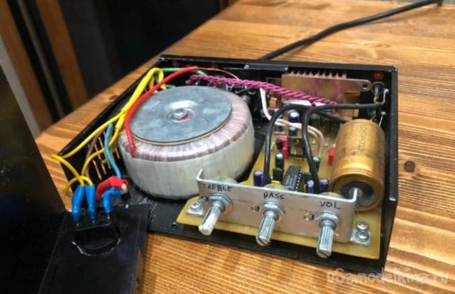 А рассказать сегодня хочу о сборке недорогого компактного усилителя с темброблоком. Немного истории. Проходя как-то много лет назад по радиорынку, увидел плату от неизвестного музыкального центра. Меня привлекло наличие многочисленных электролитов, которые даже в начале двухтысячных были в дефиците. Плата была куплена для разборки, радиодетали помаленьку выпаивались для самоделок.