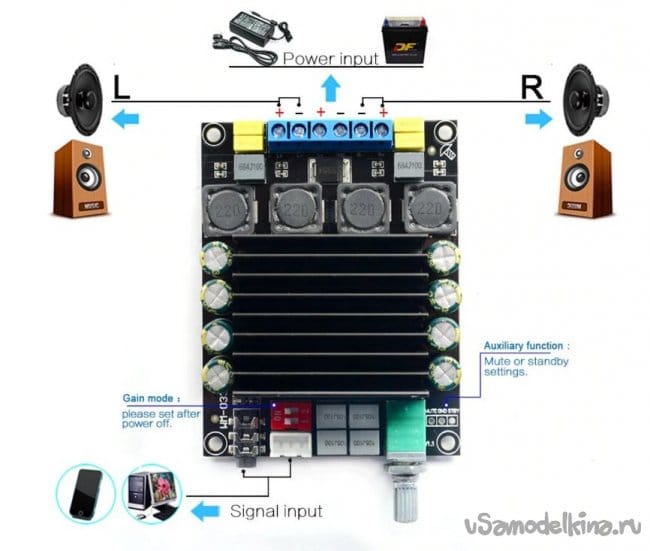 Если в случае с импульсными блоками питания спорить трудно, их дешевле и проще купить, чем сделать самому, то в других областях иначе. Возьмем, к примеру, усилители мощности. Сейчас рынок просто завален недорогими высокоэффективными усилителями класса D, часто имеющими на борту помимо линейного входа еще и блютуз, слот для microSD, кнопки управления и (или) пульт ДУ и так далее.