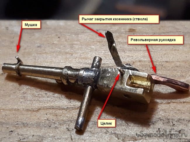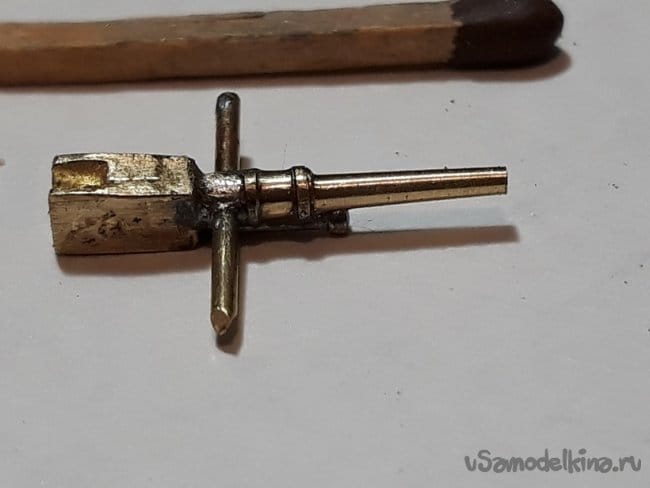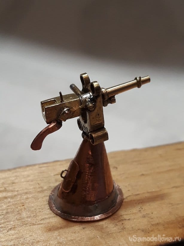 Далее принялся за изготовление орудия Гочкинса, которым была вооружена подлодка. Выточил ствол орудия и откатника. Спаял их со ствольной коробкой.