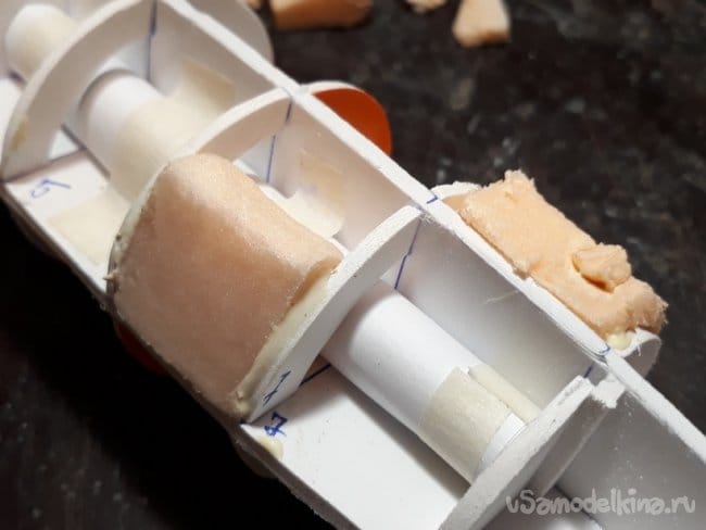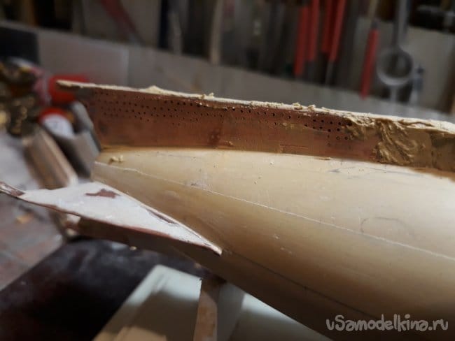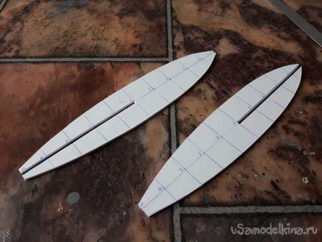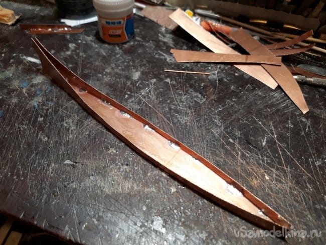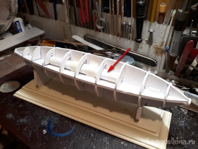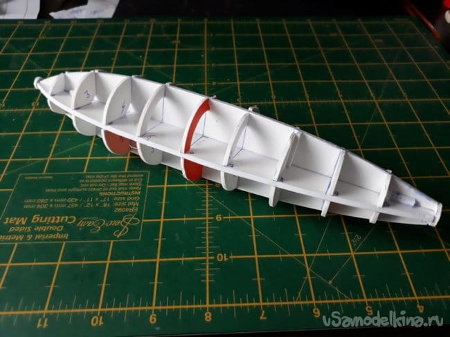 Следующим этапом было вклейка шпангоутов.