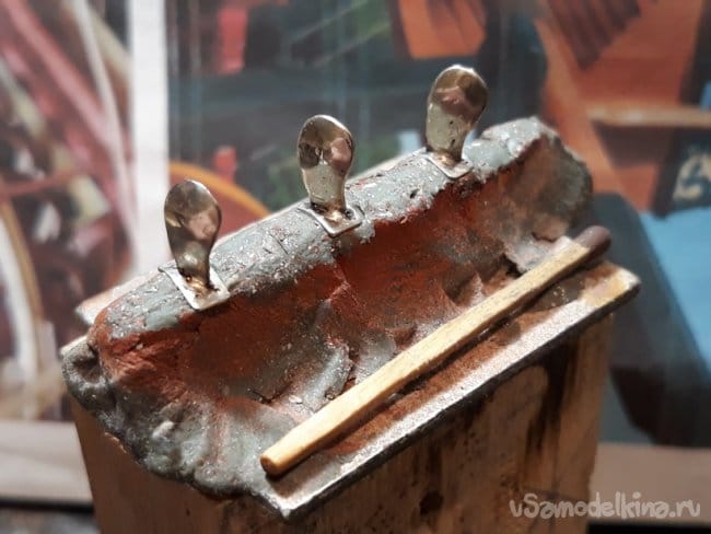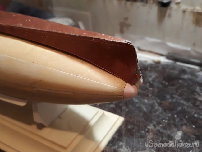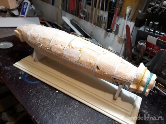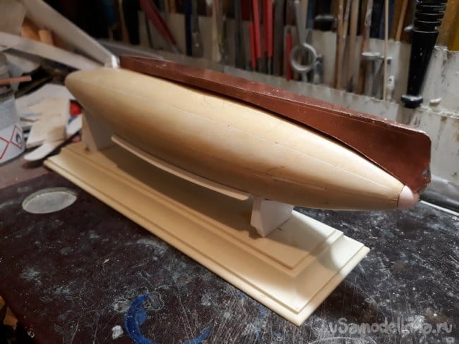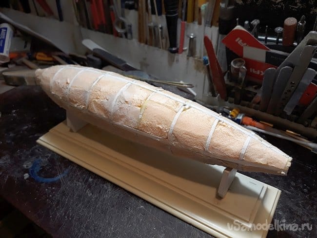 Далее изготовил вспомогательный стапель для удержания модели. Проделанная работа видна из фотографий.