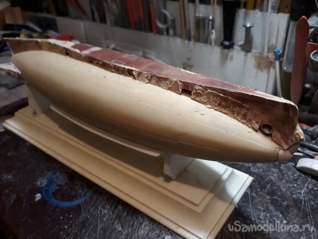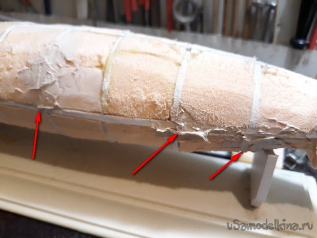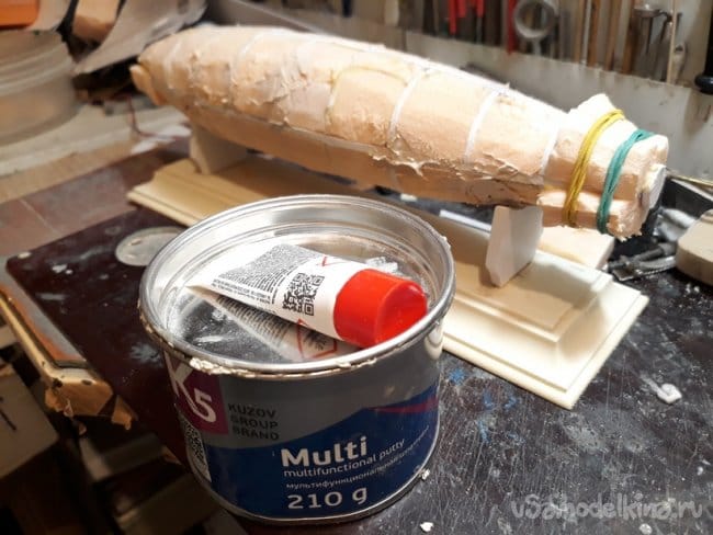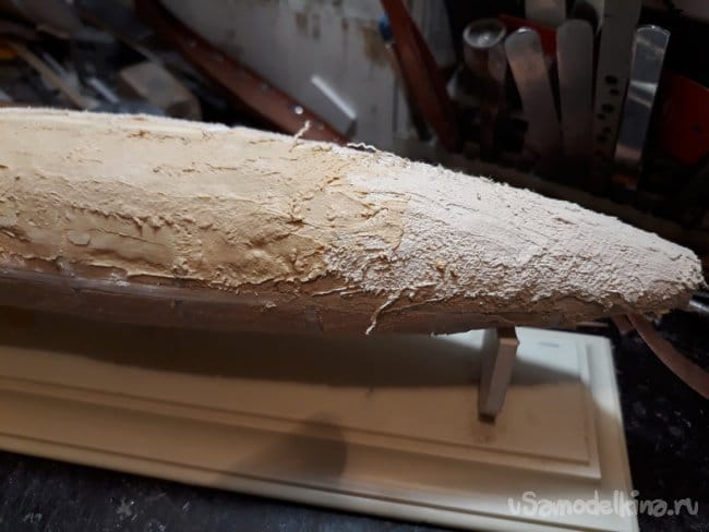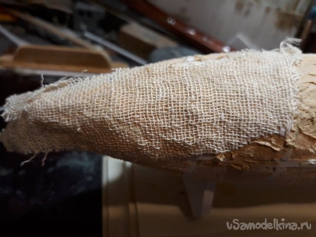 Затем зашпаклевал корпус, армируя его марлей.