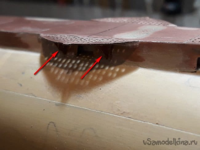 Тоже самое сделал с кормовой надстройкой, ну только сверлил чуть дольше. Это отверстия для выхлопа бензинового двигателя.