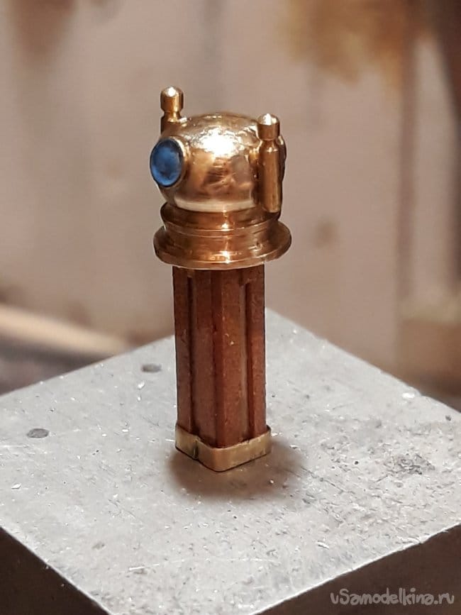 Далее оставшиеся более или мене крупные детали – штурвал, компас с нактоузом,