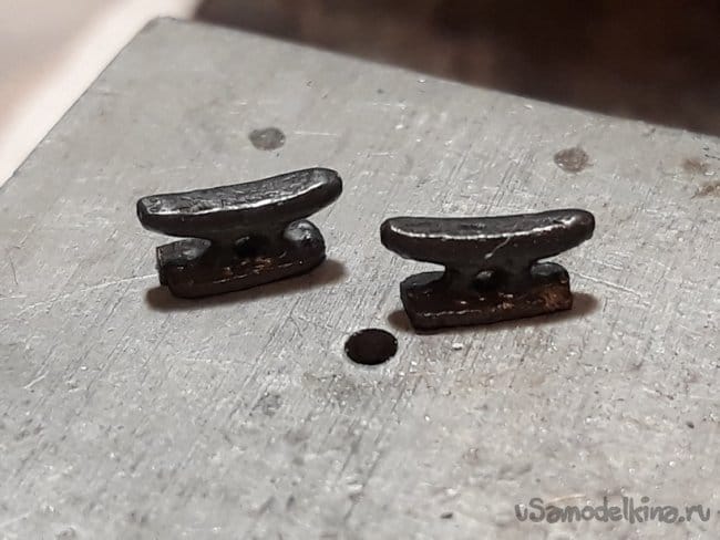 Швартовые утки, отлиты из сплава Розе, омеднены и зачернены.