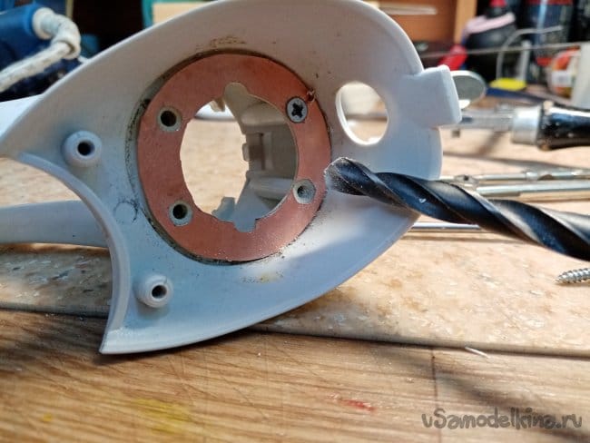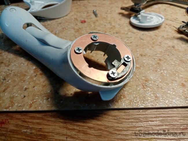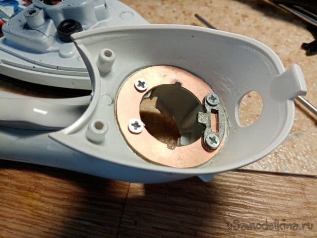 Выкручиваю четыре болтика и все разваливается на части. Нужно изготовить замену. Поскольку узел под нагрузкой склейка не поможет, даже циакрином. Самое крепкое, что попалось под руку Фольгированный генитакс.