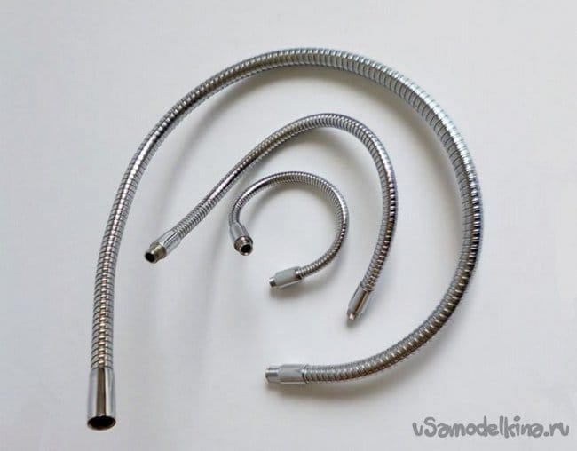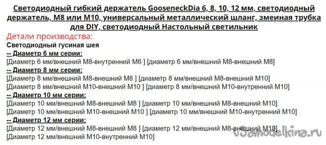 Далее, нам понадобятся металлические гибкие держатели, для крепления конструкции линзы к основанию. Как видно из таблицы, они продаются с разными диаметрами. В зависимости от того что вы будете крепить к стойке их диаметр может варьировать от 6 до 12 мм и больше.