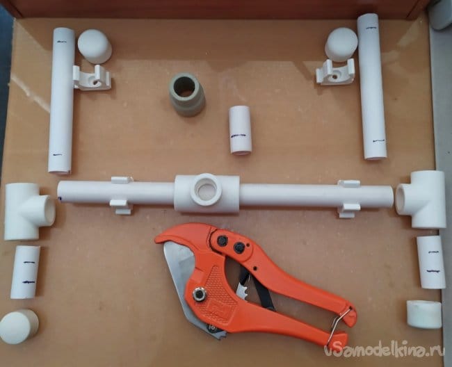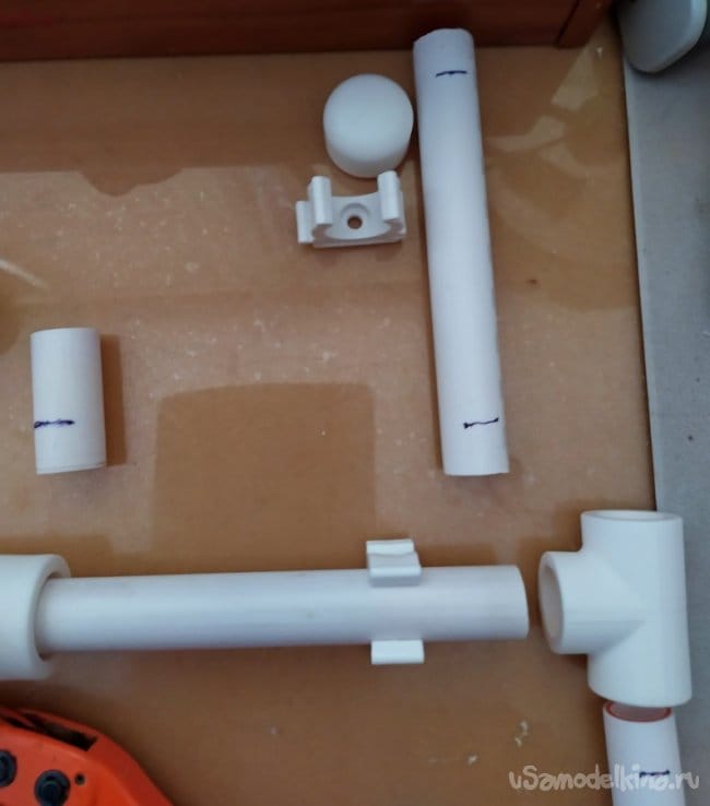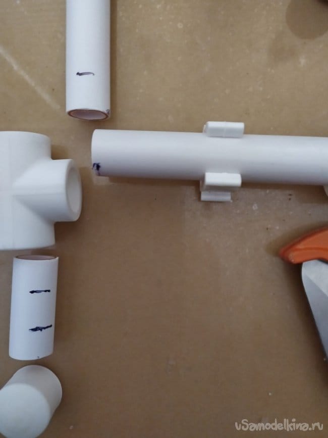 Подготовив заранее трубы и соединители, их нужно разметить с помощью фломастера по размерам которые указаны выше.