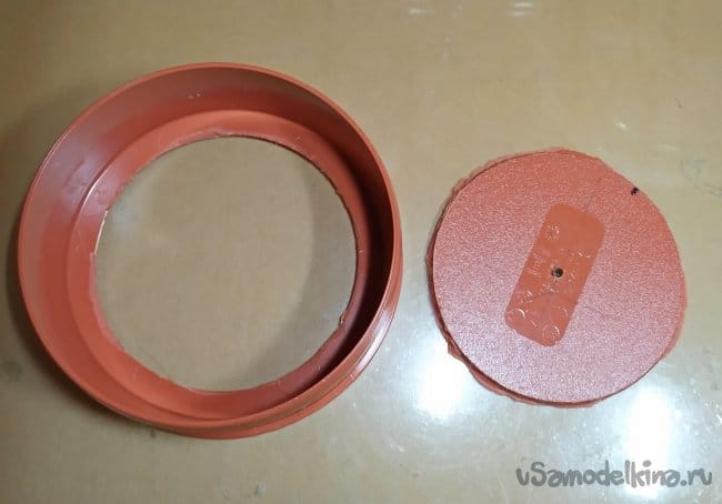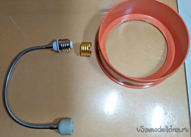 К стандартному цоколю Е27 этого удлинителя, мы и будем крепить поливинилхлоридную заглушку, для канализационных наружных труб на 160мм. Можете прикрепится и другими способами: например с помощью подходящего зажимного хомута, и т.д.