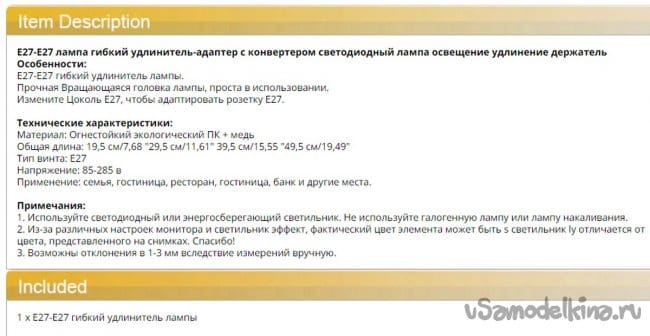 - гусак для электролампы Е-27 L= 300мм x 1шт;