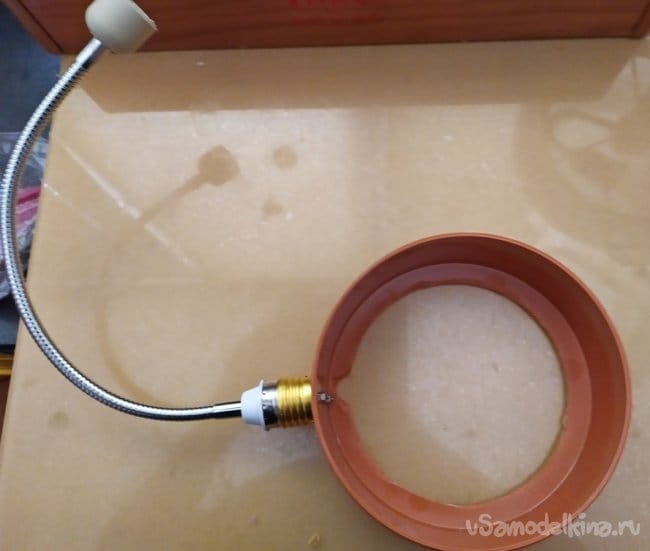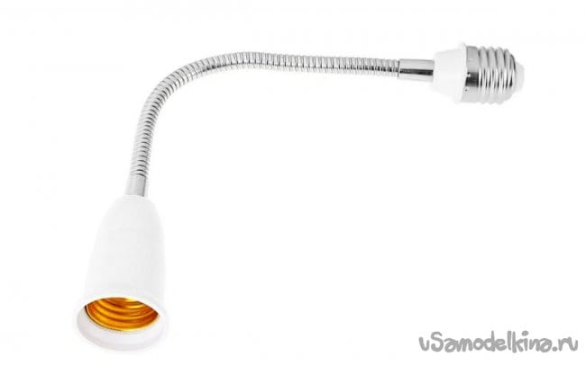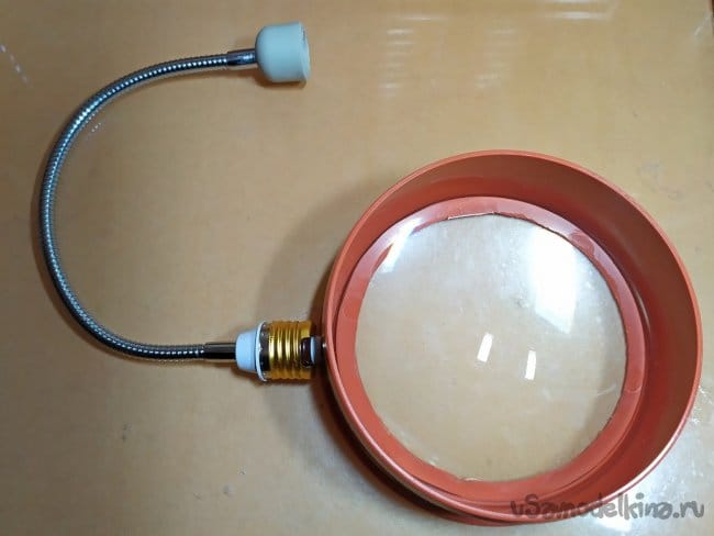 Имея в наличии гусак для удлинителя цоколя лампы - он оказался вполне подходящим для поддержания веса тяжёлой увеличительной линзы. Желательно, применить удлинитель потолще, с большим диаметром!