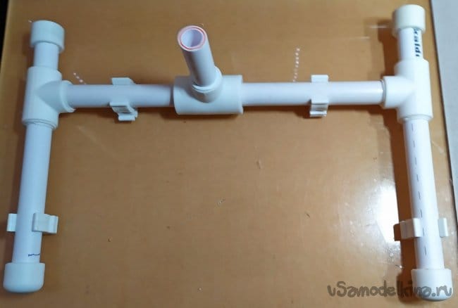 Идя использовать полипропиленовые трубы, зародилась из-за простоты и доступности. Такие трубы очень прочные, долговечные и легко восстанавливают первоначальную форму. Ещё большей прочностью обладают армированные трубы. При повторении этой самоделки лучше отдать предпочтение им. Но, учитывая небольшие размеры штатива, для реализации подойдут любые другие ПП трубы.