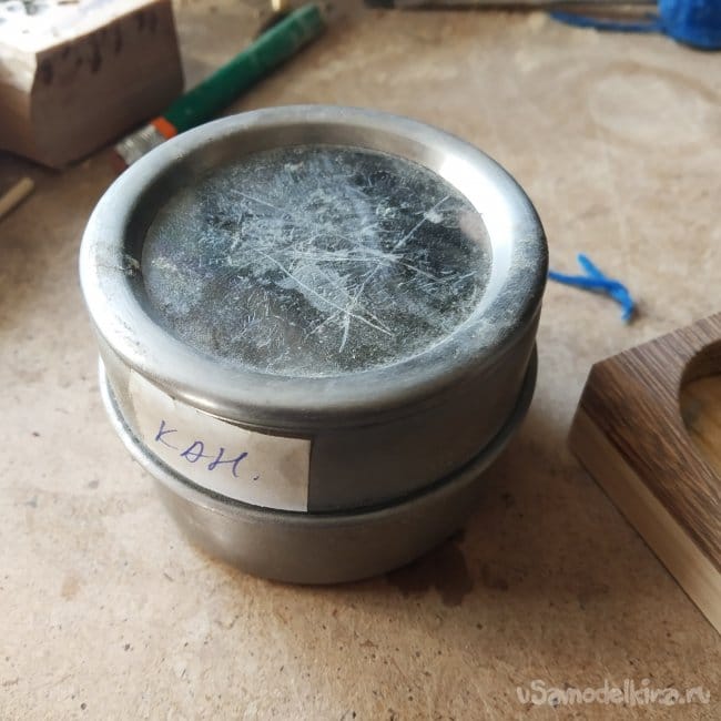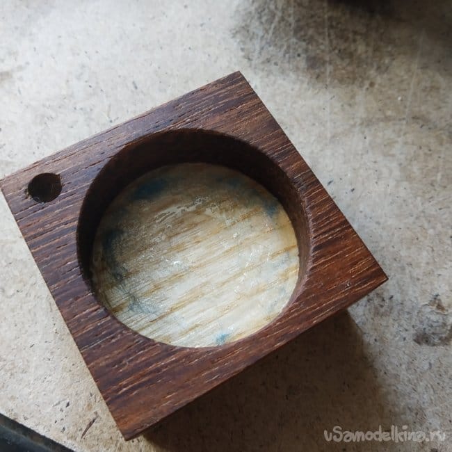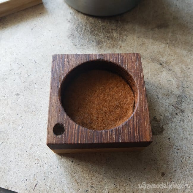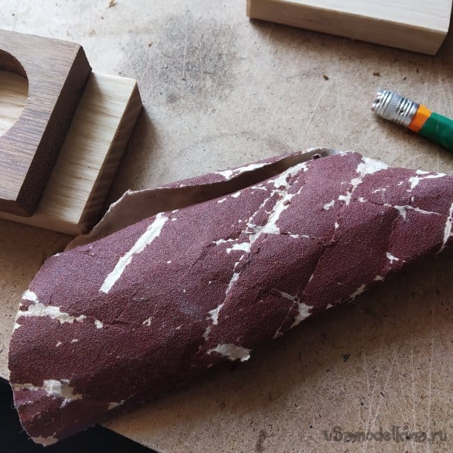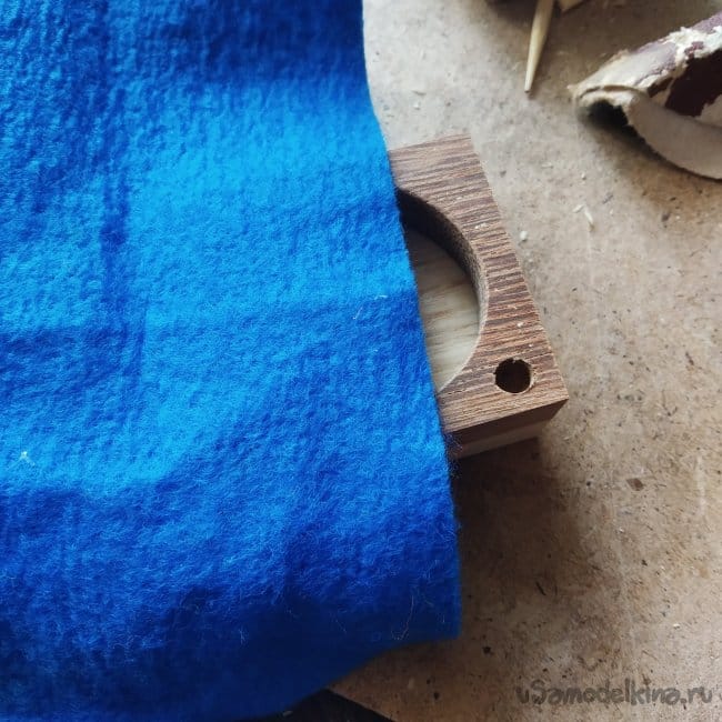 Фетр я пока не стал вклеивать, так как нужно еще зашлифовать начисто изделие. Шлифовал я сначала тем же 150 наждачным кругом, а затем прошелся 320 наждачной бумагой для блеска.
