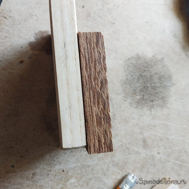 На этом же куске я шлифанул плашки ясеня, чтобы детали стыковались лучше.
