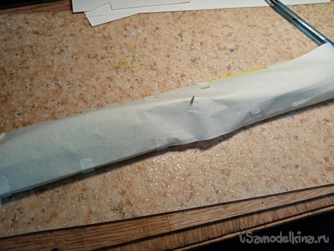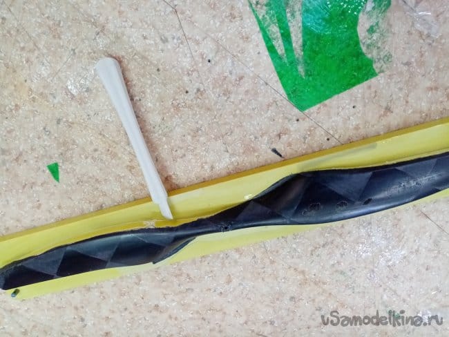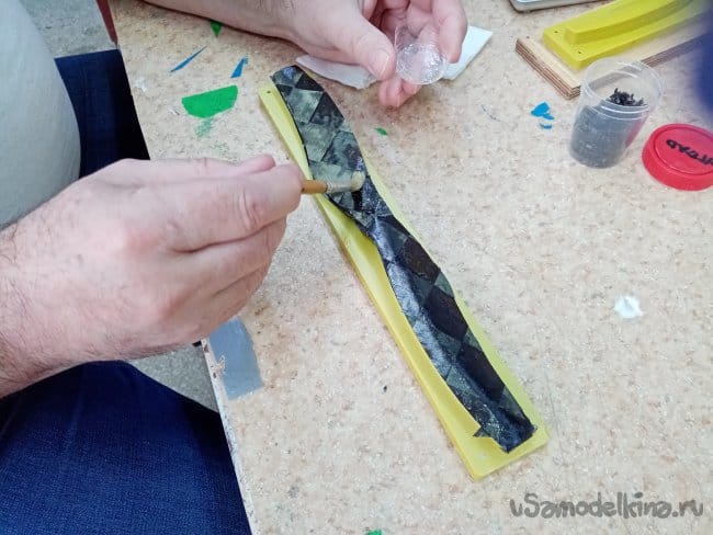 Из нарезанной трухи со смолой формируем центральное усиление.