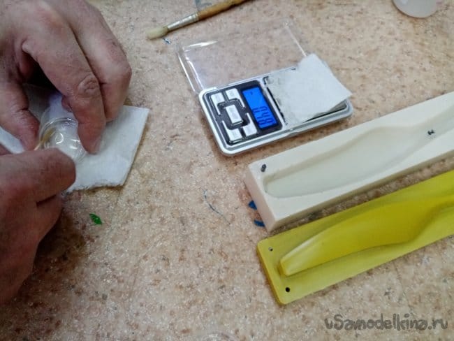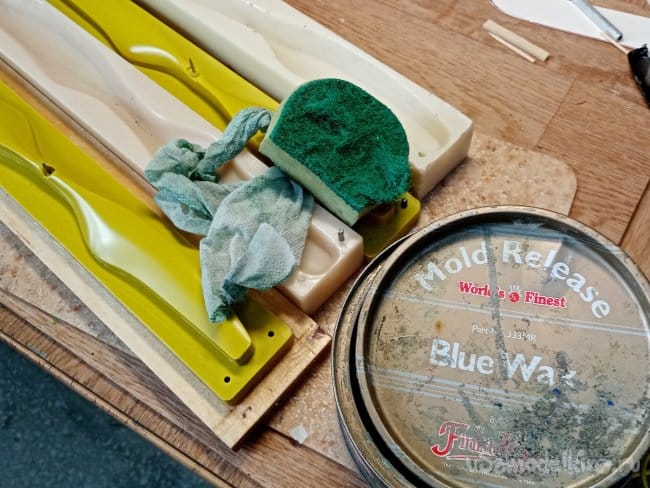 Изготовленную матрицу натираю специальным разделителем. Мажу от души, после высыхания слоя, располировываю мягкой салфеткой и опять воском. Три слоя разделителя.