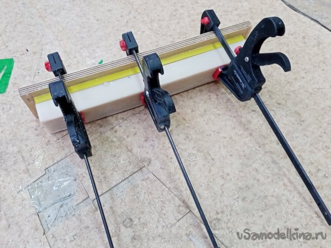 После окончательной укладки карбоновой ткам и пропитки закрываем формы и под пресс.