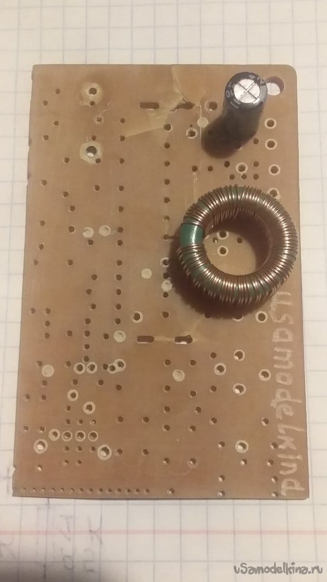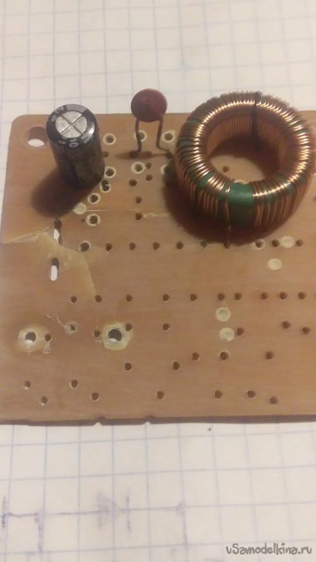 Следующим шагом будет установка керамического конденсатора между "минусом" электролитического конденсатора и концом обмотки на 60 витков.