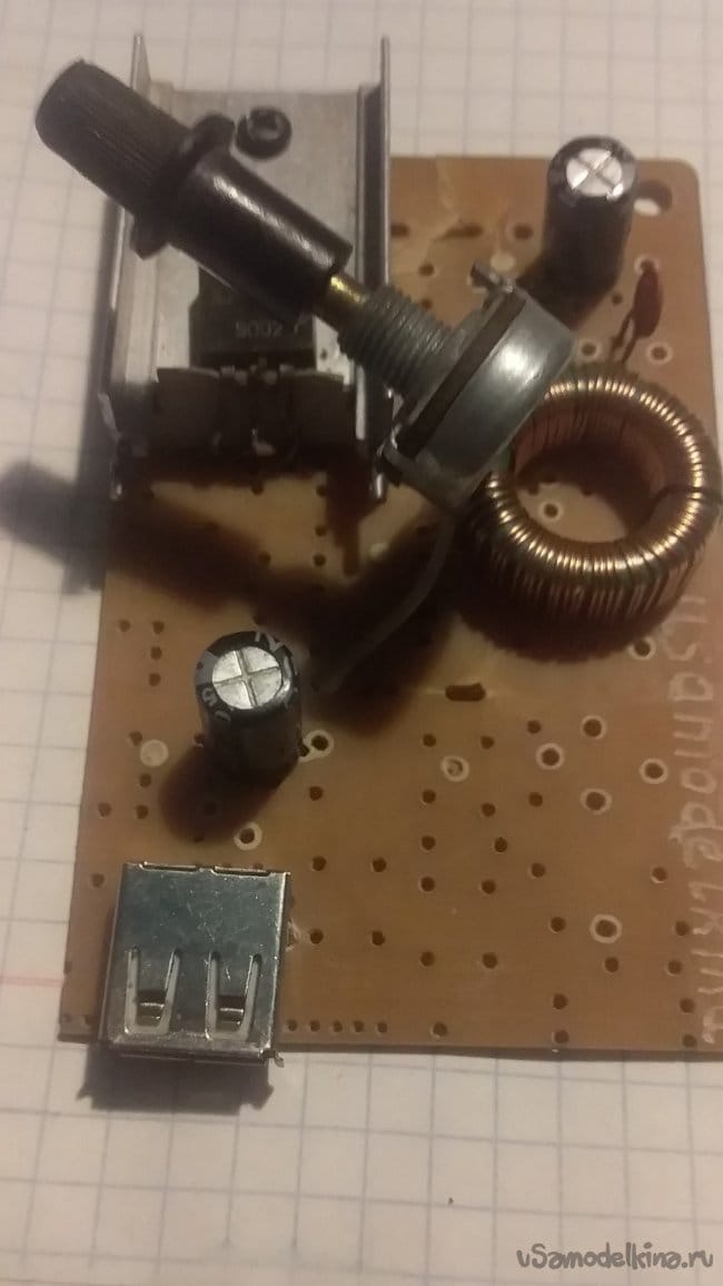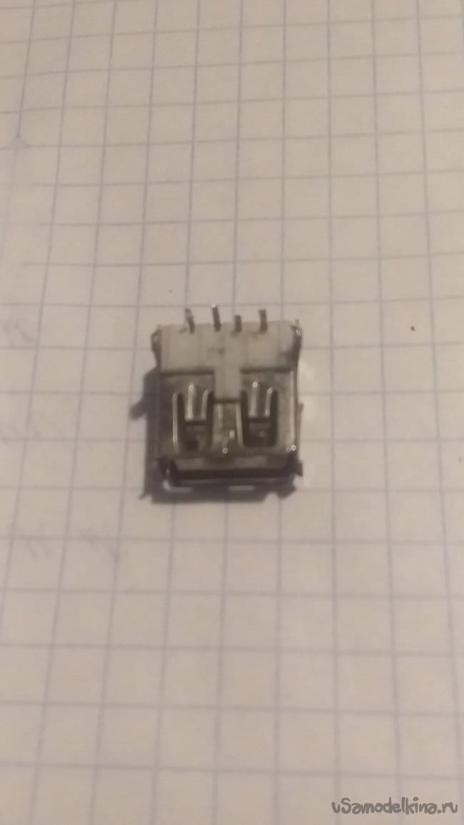 Ну и теперь осталось установить USB разъем. Крайние выводы это "плюс" и "минус".