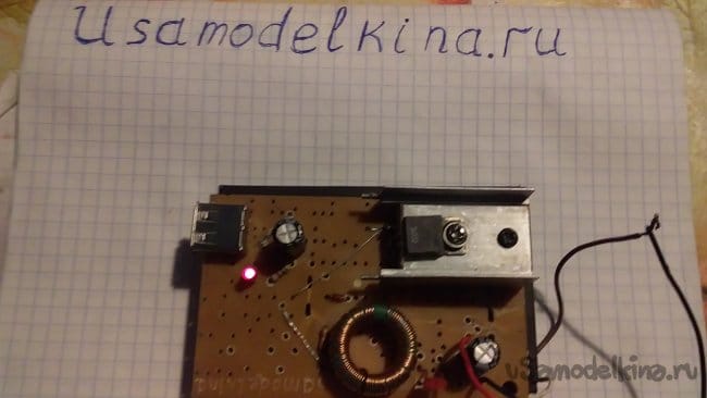 Поворачивая переменный резистор удалось добиться потребления 310 миллиампер на входе и на выходе получить 160 миллиампер. Измерив сопротивление на переменном резисторе было установлено, что резистор нужен на 330 Ом. Еще установил светодиод и как видите всё замечательно работает.