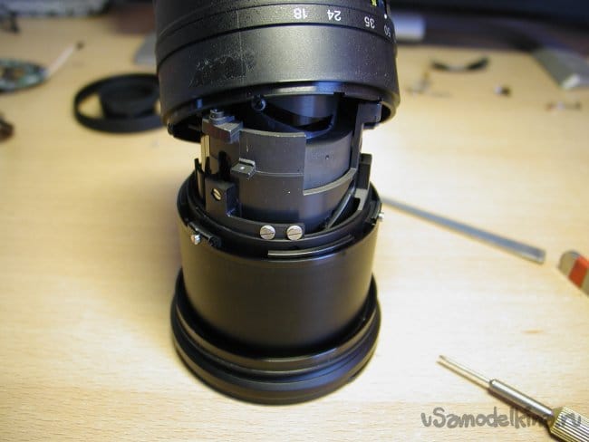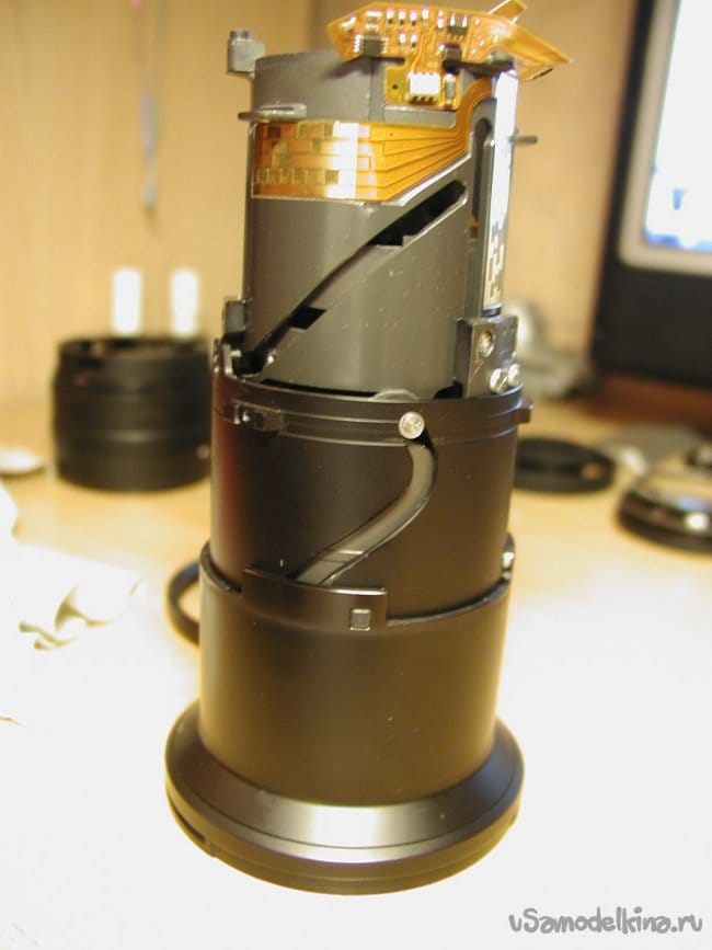 С распространенным дефектом для нетерпеливых и резких фотокорреспондентов. Которые не утруждают себя нежными обращением с высококлассной техникой. При жестком обращении с приводом зума очень быстро расшатываются крепления пинов они вырываются из гнезд и заклинивают баррели в любом положении. Мне немного повезло и зум клинанул в самом начале.