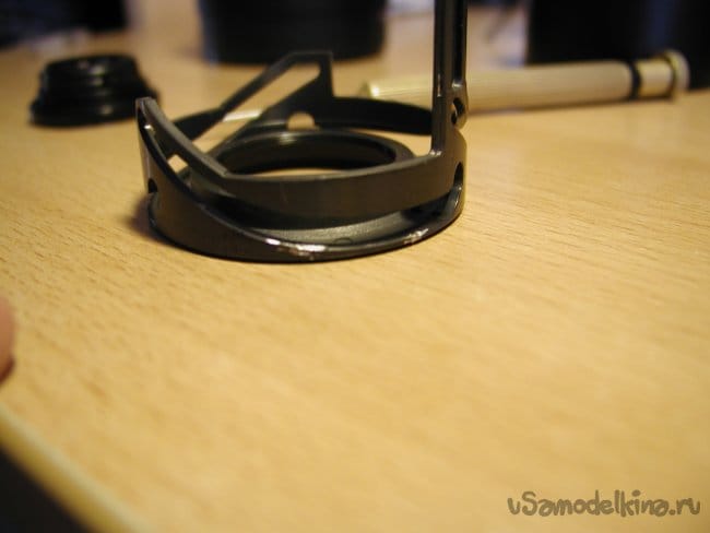 И так нанес немного этого чуда на четыре болтика , ставлю объектив вертикально, поскольку эта "супер-жидкость" может протечь в ненужное место.