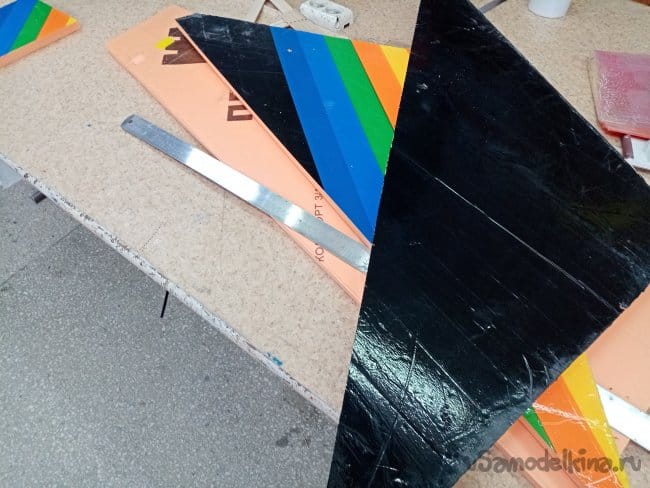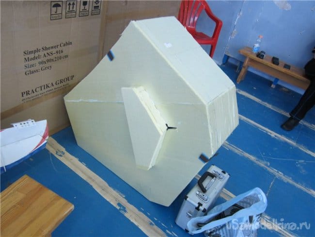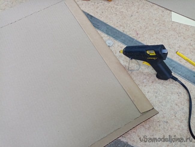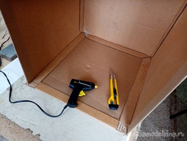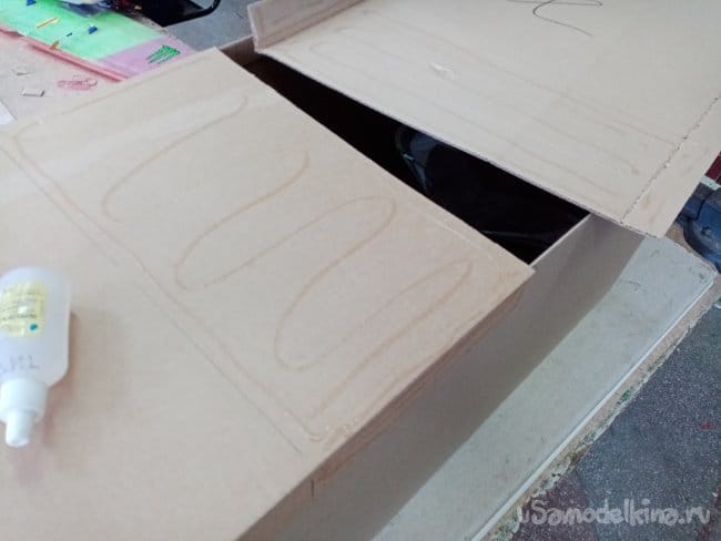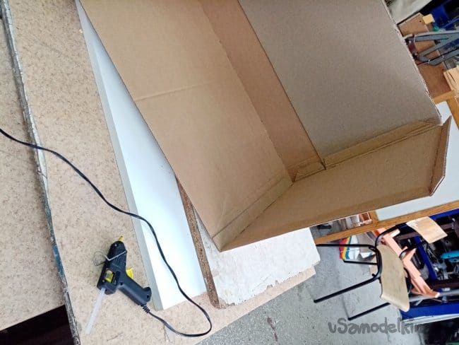Стенки перекомпоновал и приклеил к дну термопистолетом. При этом действии наносил клей на картон, чтобы случайно не подплавить пенопласт.