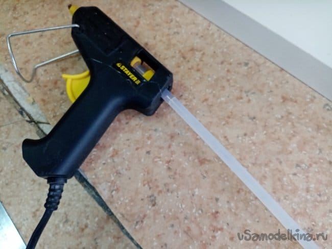 Собирать конструкцию буду при помощи термопистолета. Быстро и удобно. По прочности склейки вполне удовлетворительно.