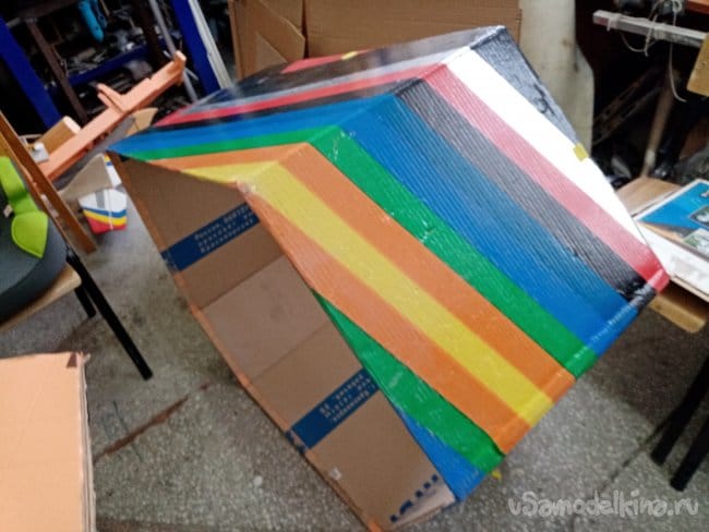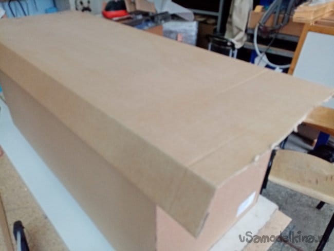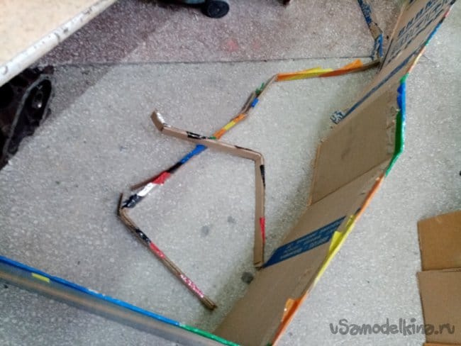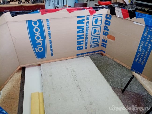 В качестве конструкционного материала использовал двойной картон от упаковок холодильников и утеплителя толщиной в двадцать миллиметров.