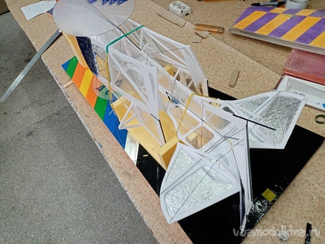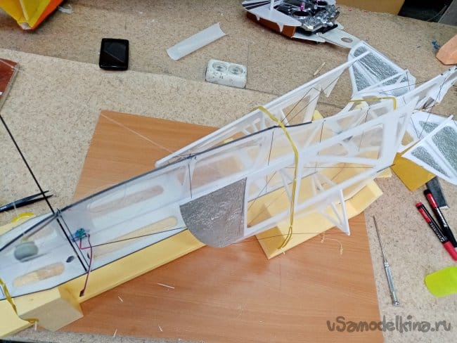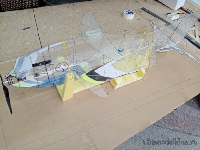 Самолетики подверглись модернизации. Изготовлены съемные крылья. Закрепленный на стапеле он имел уже вполне приемлемые габариты для перевозки.