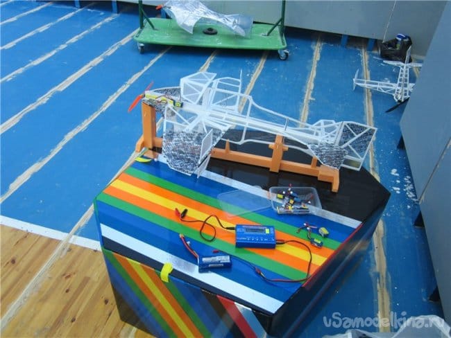 Но однажды повредил при перевозке и вместо того. Чтобы успокоиться перед стартами и медитировать тихо в сторонке, спешно ремонтировал самолетик.