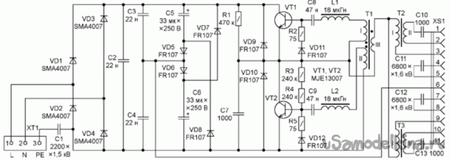 Не забывайте, что что все контакты этой схемы не имеют гальванической развязки от сети. Соблюдайте технику и меры безопасности для избегания получения электротравмы. Током может ёкнуть!