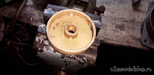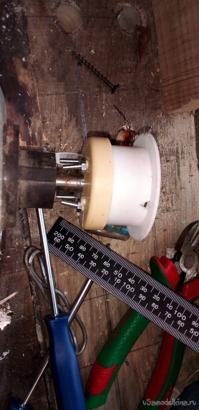 Для начала нужно взять шайбу которая была на валу сепаратора. В ней я просверлил отверстия 3мм, вот так.