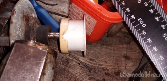 Теперь отрежем кусочек фанеры на один болтик М3 к внутренней трубки барабана.