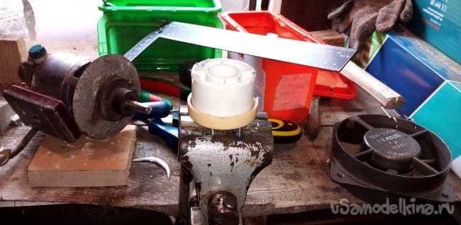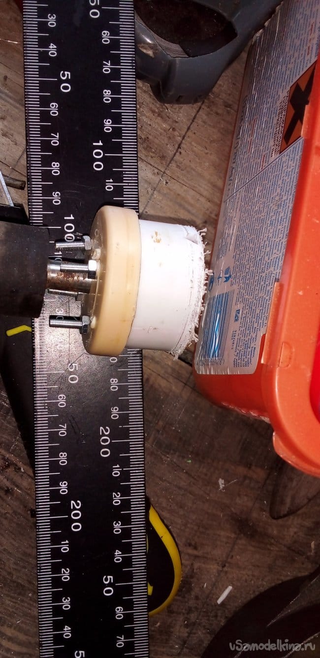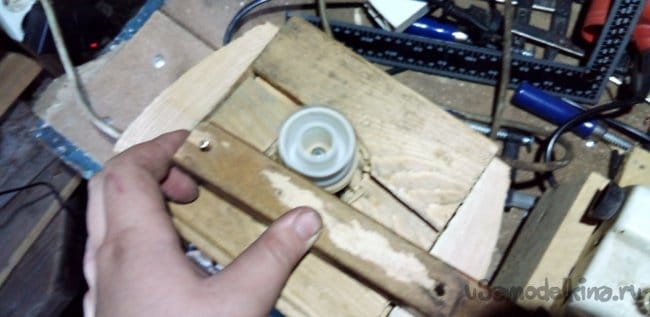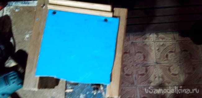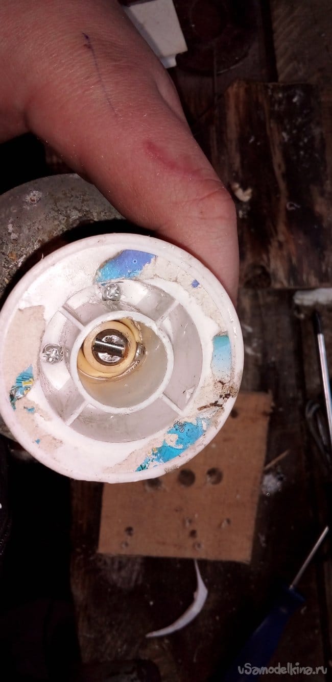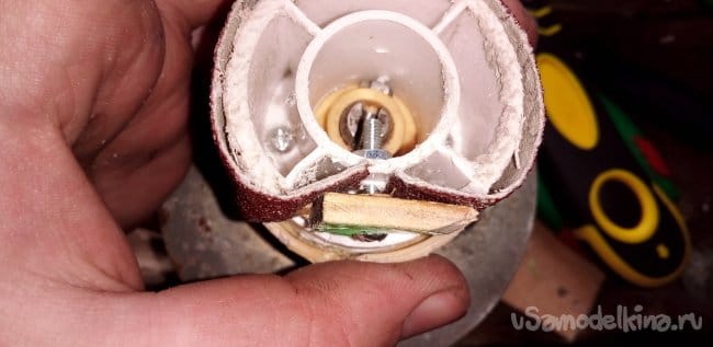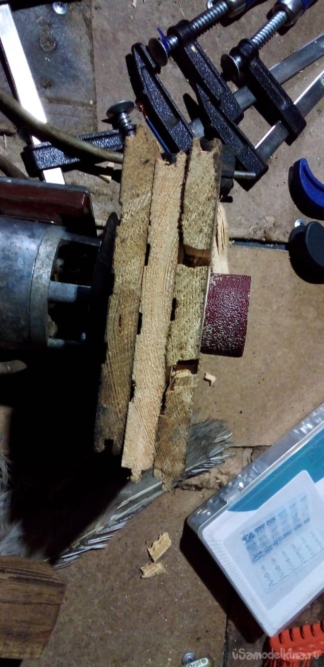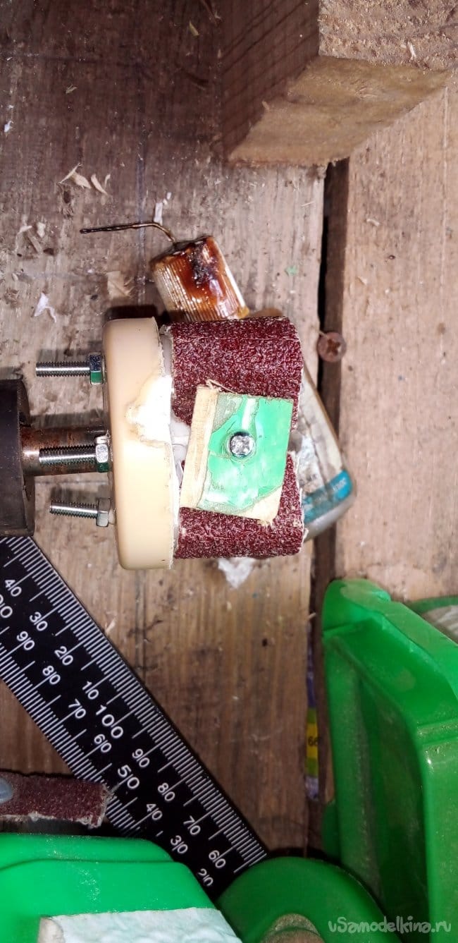 Он состоит из трёх досочек первая надевается на двигатель, вторая должна не задевать болтики, а третья должна закрывать шайбу, но не закрывать барабан с наждачной бумагой. Я это делал сверлом по периметру дыры так, как это не отверстие.