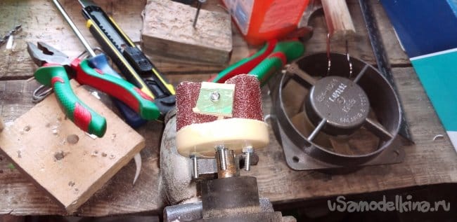 И крепим таким образом к барабану. Главное затянуть сильно, а то отлетает на высоких оборотах двигателя. У меня наждачная бумага перестала отлетать с третий попытки.