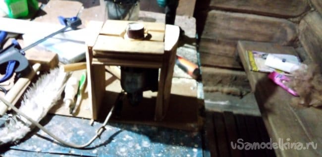 Ещё нужен какой-то барабан, и кучка дерева. А также вилка с проводом и выключатель, но у меня это уже шло с двигателем.