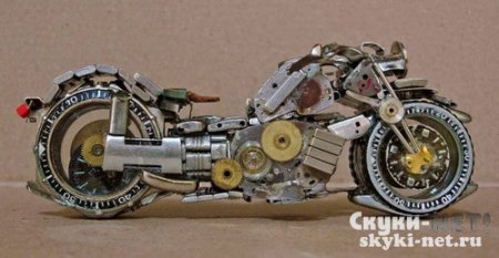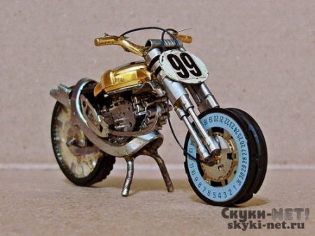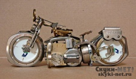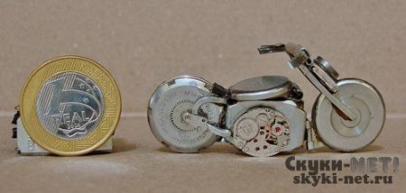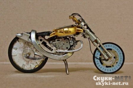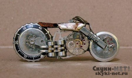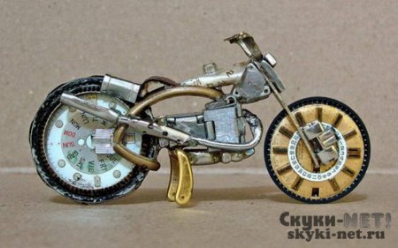 Необычные поделки из наручных, и не только, часов. Смотрите, рассматривайте, узнавайте из каких частей часов сделаны мотоциклы!