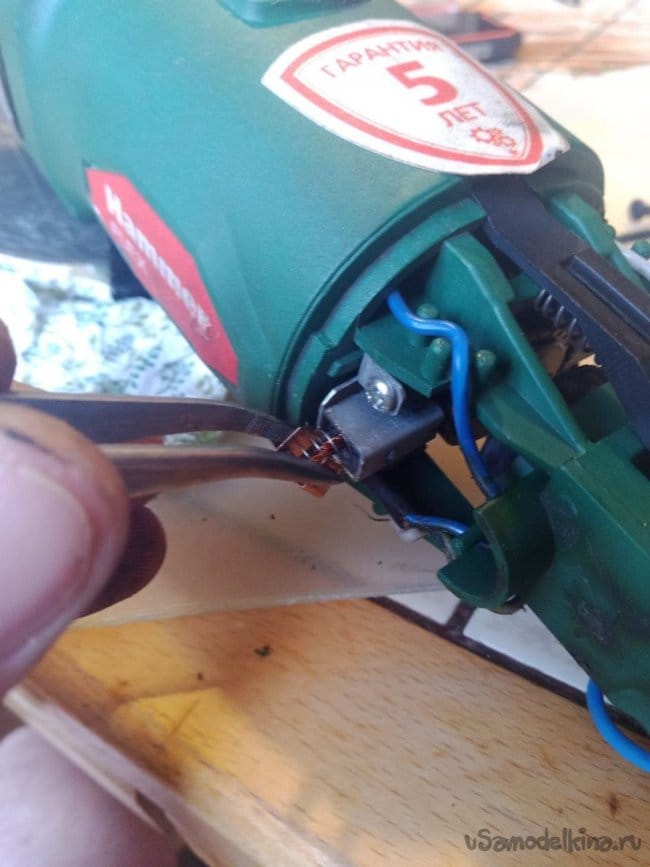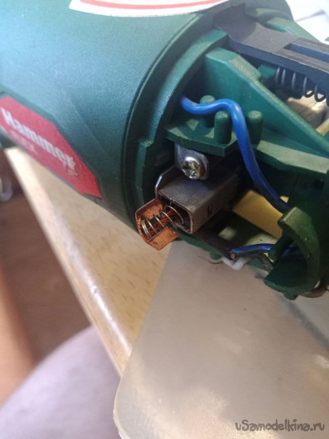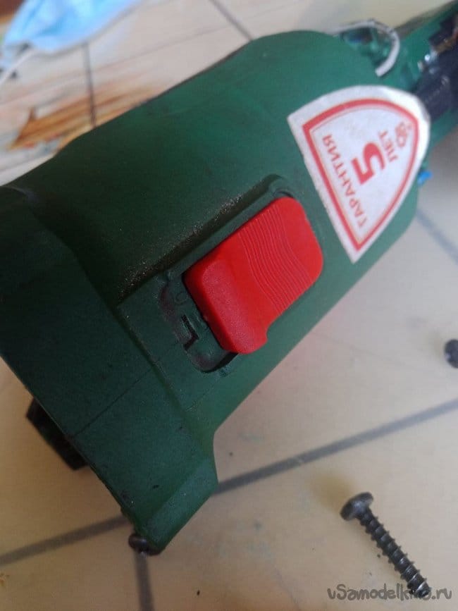 Жила-была у меня болгарка фирмы Хаммер (чехи-уроды вроде делают), купленная в магазине Старт 23 февраля 2020 года. Теперь того магазина уже нет. И на второй неделе использования у болгарки сломалась кнопка питания. Она перестала фиксироваться, обломался малюсенький пластмассовый фиксатор. Помучился я так пару недель болгарить, и поехал в Старт сдавать. А они уже знали, что их скоро закроют, и сказали мне, что мол, везите в сервис сами, мы тут не при делах. И тут жизнь закрутила, как-то да работает, и на ручке написано: 5 лет гарантии. Это успокоило, и я решил не торопиться с ремонтом. Прошло больше года, появилось время, и решил я болгарку отремонтировать по гарантии. Опаньки, оказалось, что гарантия 1 год, а чтобы получить 5 лет, надо было в течение месяца зарегистрироваться на сайте Хаммера. Облом, значит будем чинить сами. Порылся на ютубе, учёл опыт неудачного чинильщика, и починил-таки, чем и спешу с вами поделиться. У знакомого такая же болгарка, там же купленная, и такая же неисправность. Думаю, это у них массово.
