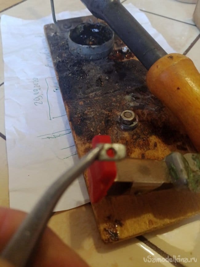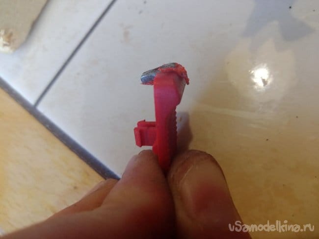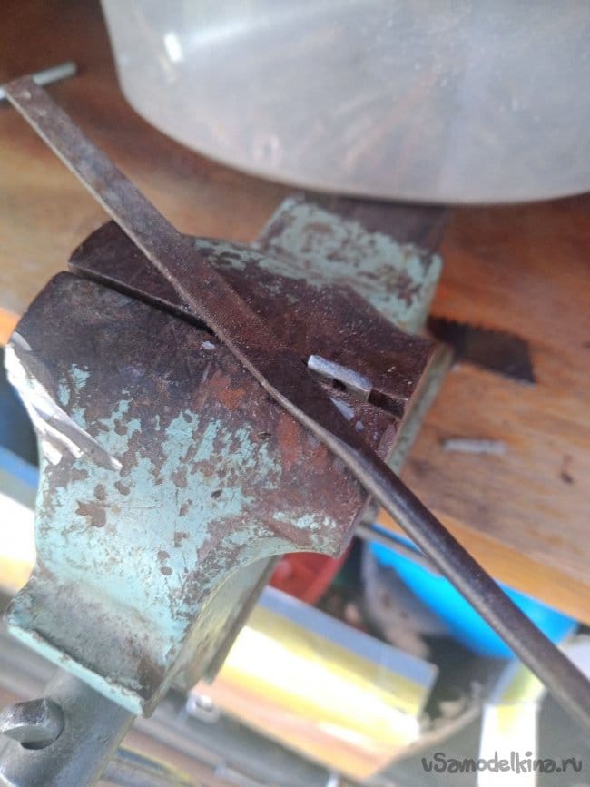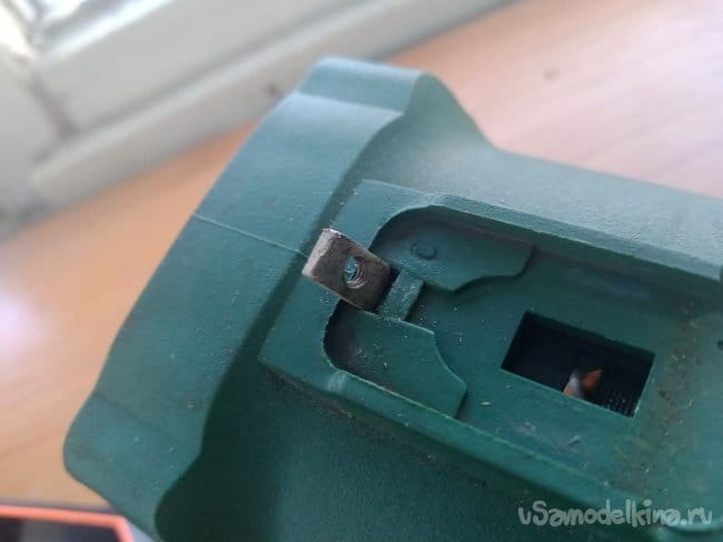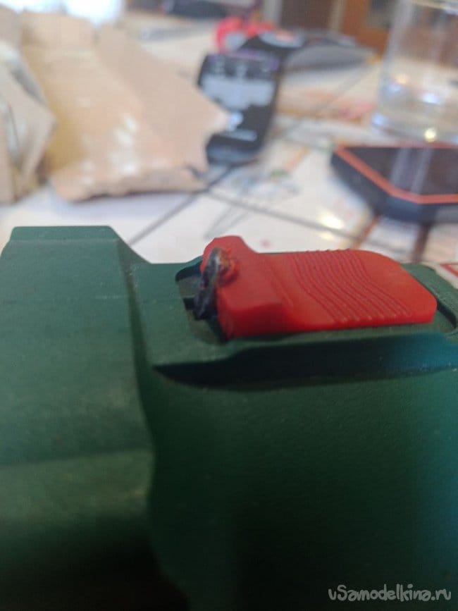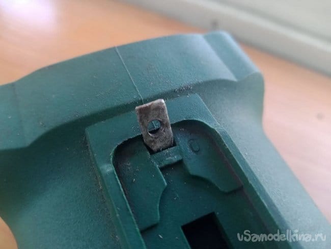 У нас это будет новая защёлка. По размеру великовата, поэтому надфилем допиливаем ширину, чтобы свободно входила в пазик, для неё дядей конструктором предназначенный. По рецепту с ютуба пытаемся интегрировать железку паяльником.