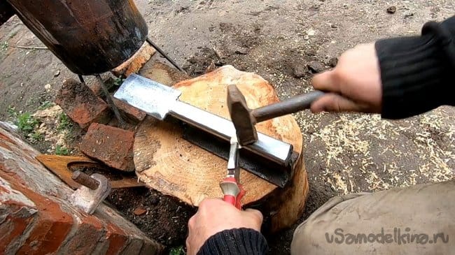 Крепко приварил шип, благодаря которому наковальня будет фиксироваться на пне. Сразу забудьте о саморезах, винтах и прочей ерунде, наковальня на них быстро начнет скакать, а шип ведет себя отлично.