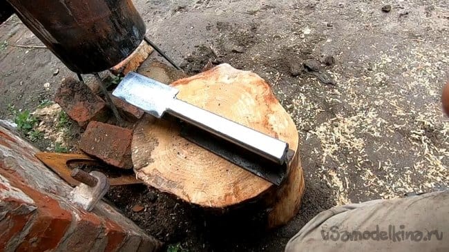 Рельса у меня довольно узкая, не такая, по которой ездят поезда, ну да мне хватило. Уже при помощи этой маленькой помощницы я выковал неплохой нож из напильника. Обо всем по порядку!