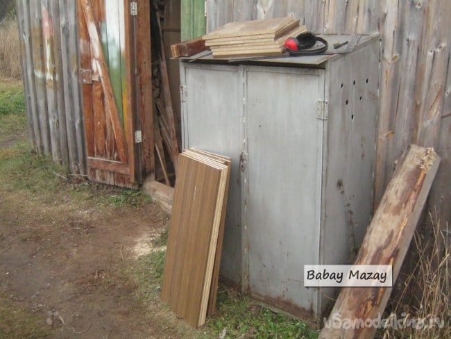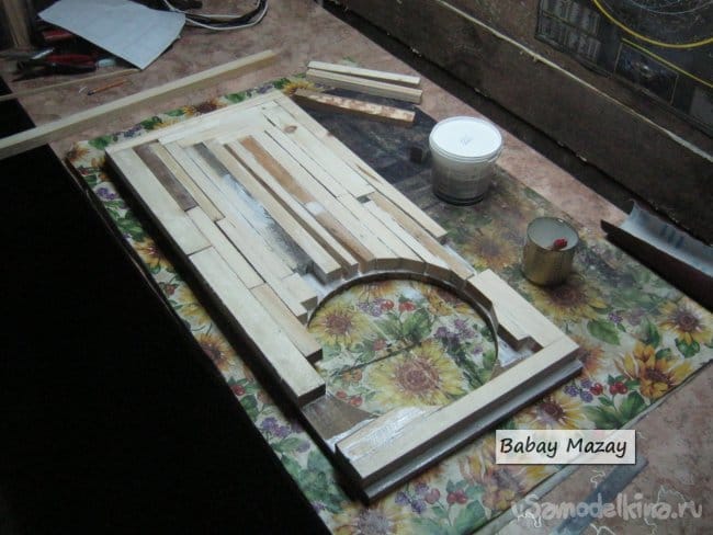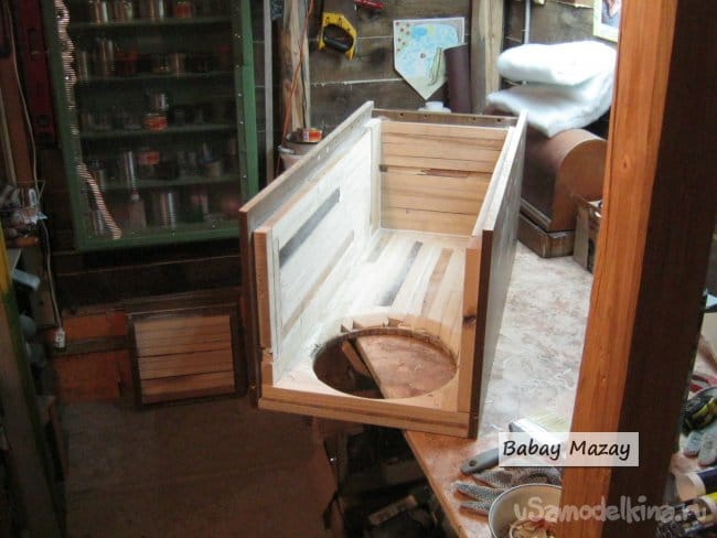 Подготовленный набор щитов-стенок разметил, просверлил и разделал (для головок потай) отверстия для саморезов. Саморезы потребовались двух типоразмеров, стенки крепил насквозь к деревянной части, места стыков подогнал рашпилем, при сборке обильно проклеил (Фото 10).