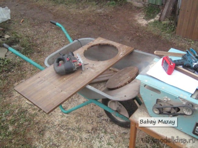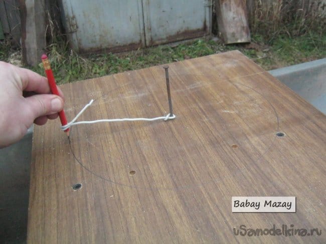 Отверстия для динамиков выпилил электролобзиком, разметку сделал импровизированным циркулем (Фото 5, 6).