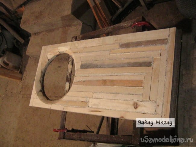 Подготовил переднюю стенку для установки динамика (установка снаружи) – устранил тоннель образованный дополнительным, наклеенным слоем – разделал его края рашпилем ~под 45̊̊ (Фото 9). Теперь, при установке динамика окна его корзины остаются полностью открытыми, их сечение не уменьшается.