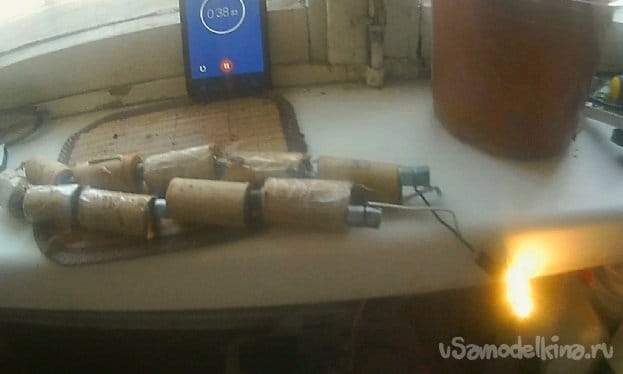 Итак, тестируем, подключаю нагрузку двенадцать вольт, меньше 0.1А и включаю секундомер.