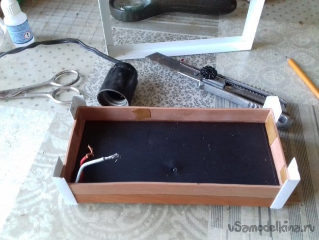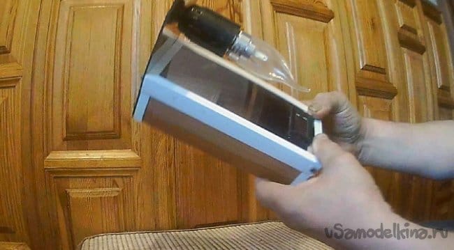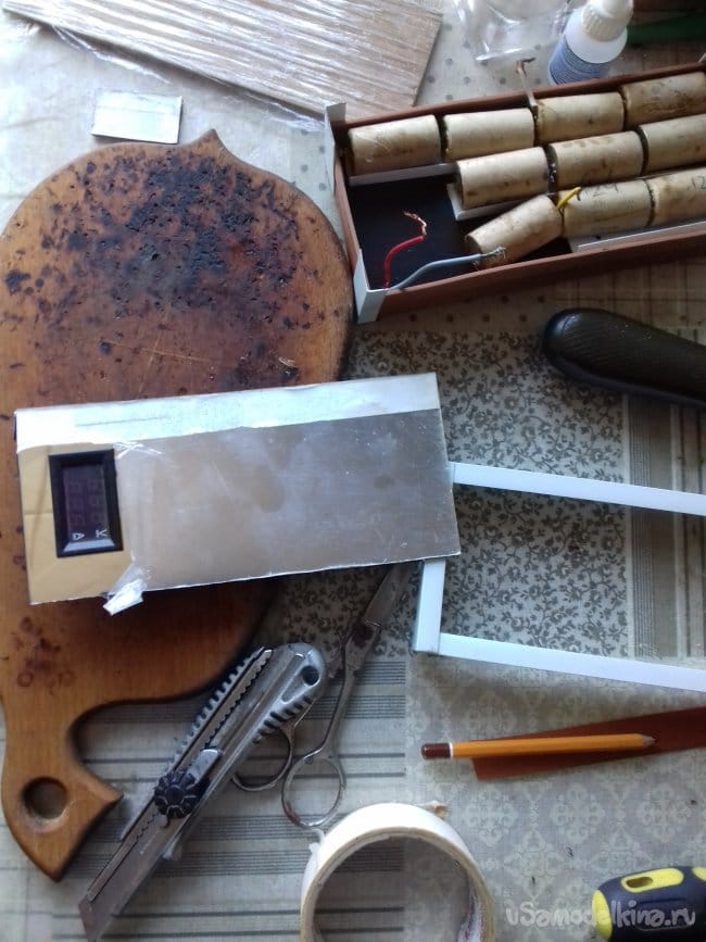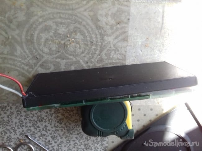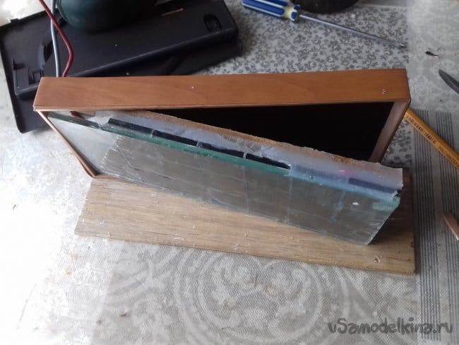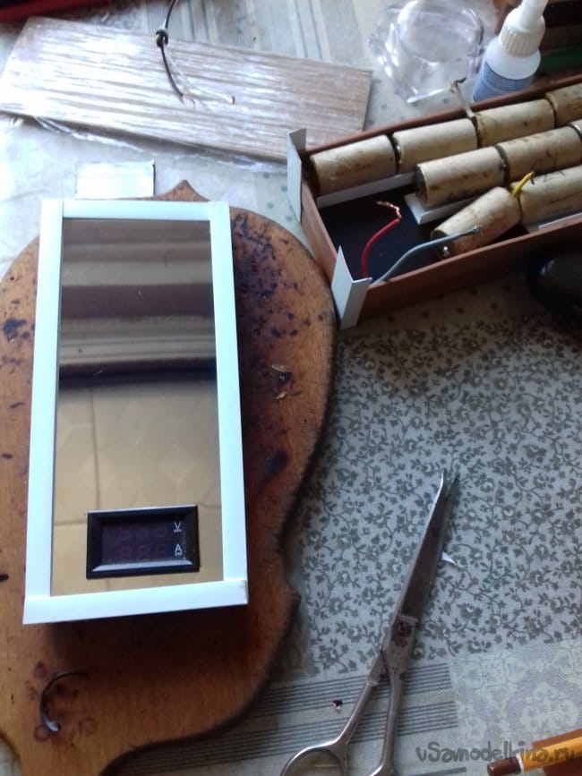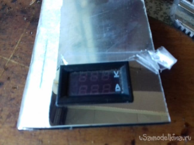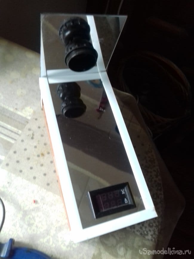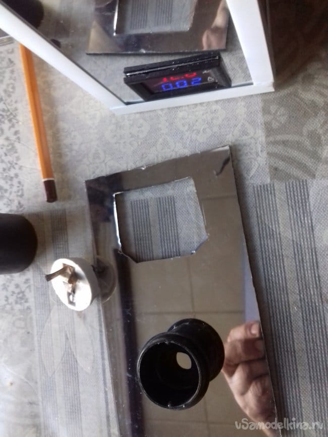 В каркас крышки вложил зеркальным пластиком, он будет являться и отражателем. Это мягкий материал и легко режется ножом. Так же решил в крышке разместить вольтметр, можно будет видеть в какой готовности аккумуляторы. Устанавливать контроллер заряда-разряда не стал. Мощность панели небольшая, она даже не для заряда, а для подзарядки. Навредить аккумуляторам не сможет. Ну а разряд, так если включу при необходимости, то при просадки увижу и отключу контакт.