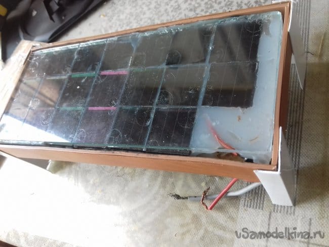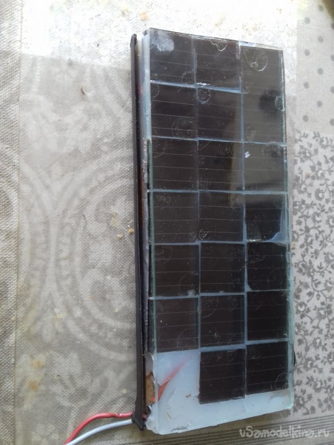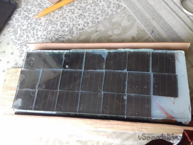 Чтобы проверить, я даже не стал паять аккумуляторы, при помощи магнитов набрал последовательную цепочку, подключив панельку и оставил на подоконнике, на полтора солнечных дня.